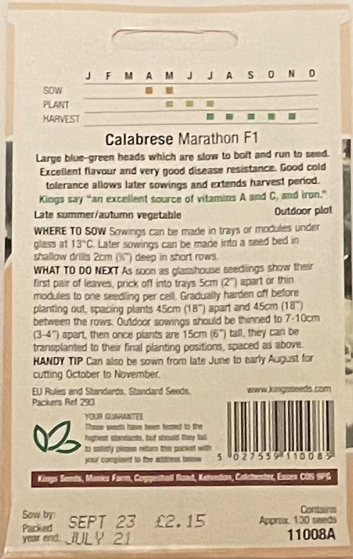 Broccoli Calabrese Marathon F1 100 Seeds
