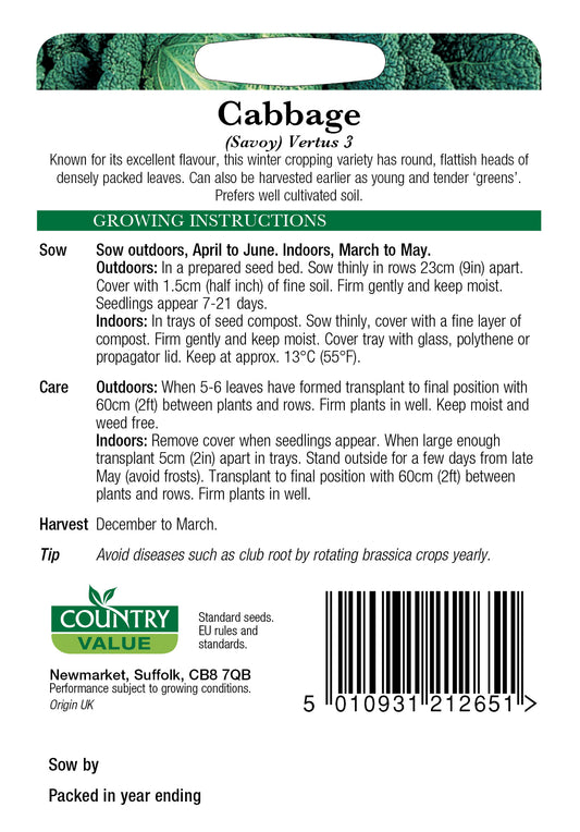 Cabbage (Savoy) Vertus 3 300 Seeds