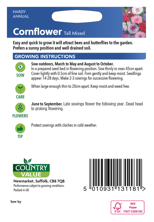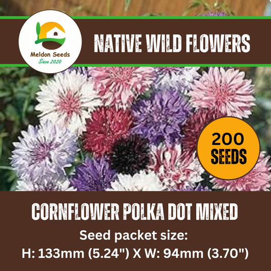 Cornflower Polka Dot Mix Seeds - 200 Native UK Wild Flower Seeds for Attracting Birds, Bees, Wildlife, Pollinators, Suitable for Growing Outdoors in Meadows, Fields and Gardens by Meldon Seeds