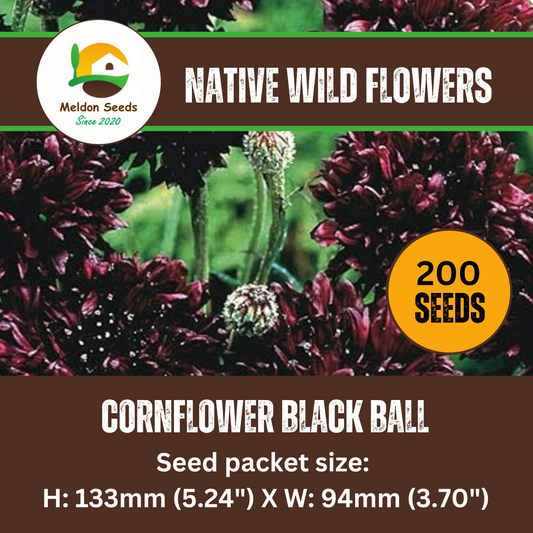 Cornflower Black Ball Seeds - 200 Native UK Wild Flower Seeds for Attracting Birds, Bees, Wildlife, Pollinators, Suitable for Planting and Growing Outdoors in Meadows, Fields, Gardens and Borders