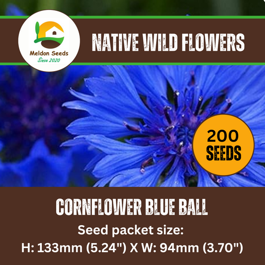 Cornflower Blue Ball Seeds - 200 Native UK Wild Flower Seeds for Attracting Birds, Bees, Wildlife, Pollinators, Suitable for Planting and Growing Outdoors in Meadows Fields and Gardens by Meldon Seeds
