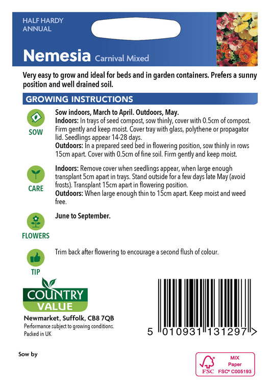Nemesia Carnival Mixed 400 Seeds
