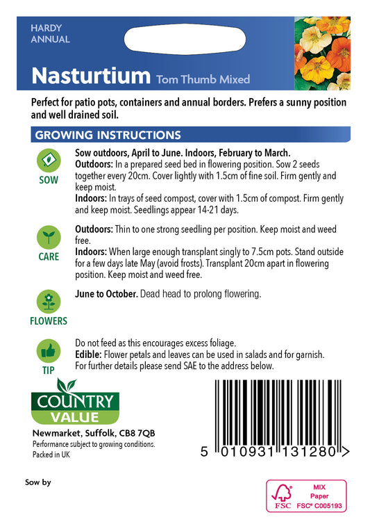Nasturtium Tom Thumb Mixed 25 Seeds