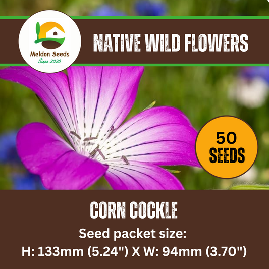 Corn Cockle Seeds - 50 Native UK Wild Flower Seeds for Attracting Birds, Bees, Wildlife, Pollinators, Suitable for Planting and Growing Outdoors in Meadows, Fields, Gardens and Borders by Meldon Seeds