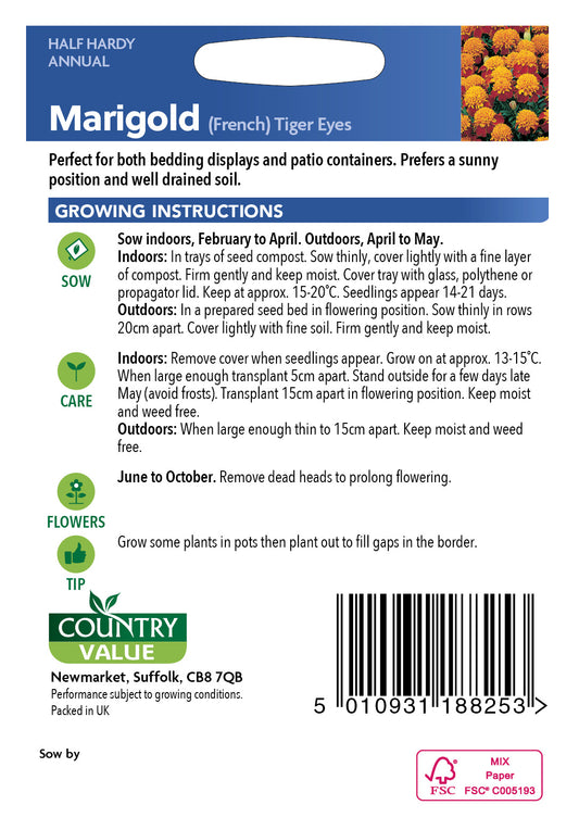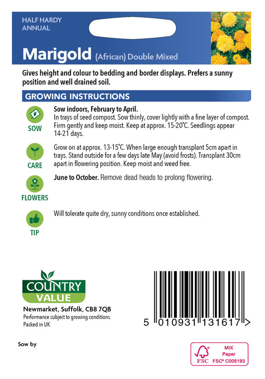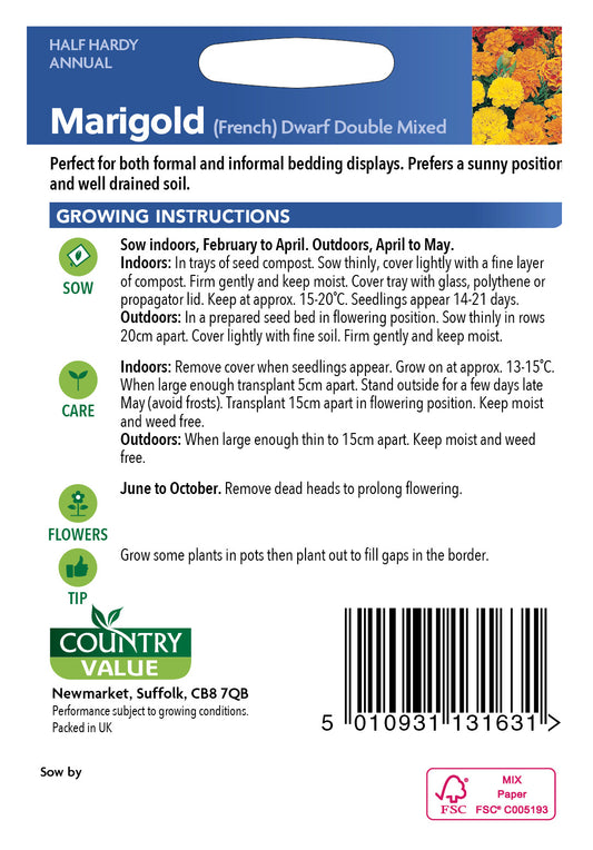 Marigold (French) Dwarf Double Mixed 150 Seeds