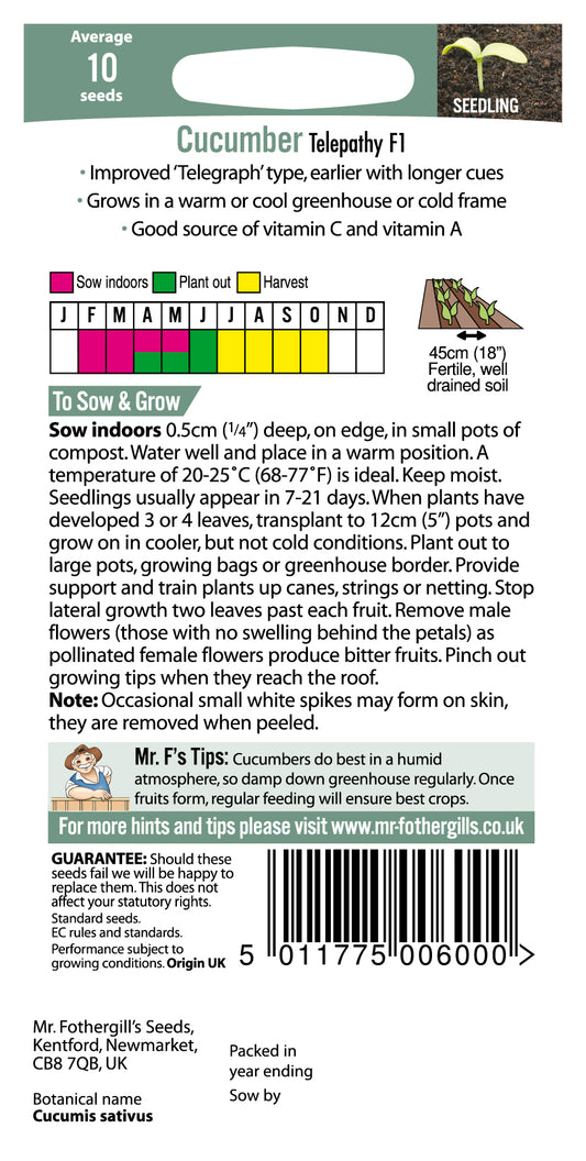 Cucumber Telepathy F1 10 Seeds - Mr Fothergills