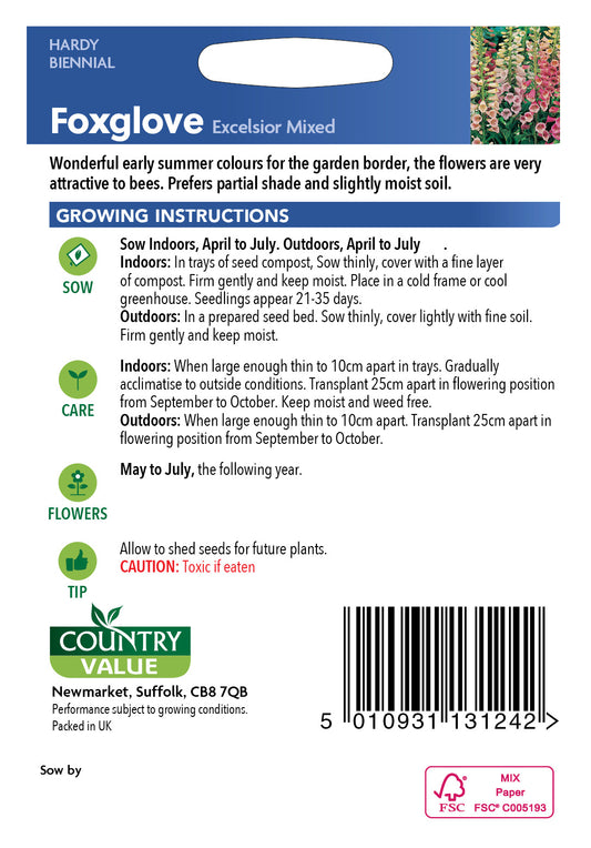 Foxglove Excelsior Mixed 2000 Seeds - Native UK Wild Flower