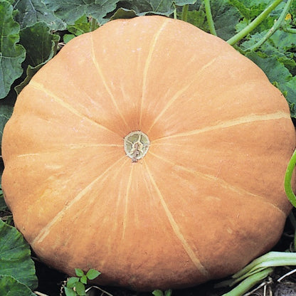 Pumpkin Hundredweight can attain huge weights if grown singly. This pumpkin is oval to round in appearance with a deep orange flesh which can be used for making soups or a tasty pumpkin pie. To enable your fruits to thrive, allow 200cm between plants. If you want one enormous pumpkin it is important to thin out any other fruits as they form so they do not use any of the nutrients or water required for your giant fruit! To get very large fruits take out the growing point after 3 to 4 fruits have set then gradually reduce down so only 1 to 2 plants develop per plant. A good source of pro-vitamin A, vitamins B1, C and E.